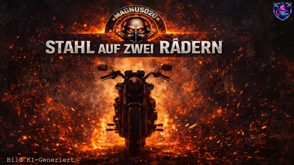 Lyrics Titel: STAHL AUF ZWEI RÄDERN [Intro]KLACK! [Verse 1]Zündschlüssel rein — Kaltstart in der BrustLeder knarzt, die Straße riecht nach LustVisier runter, Blick wie ein SchnittIch…